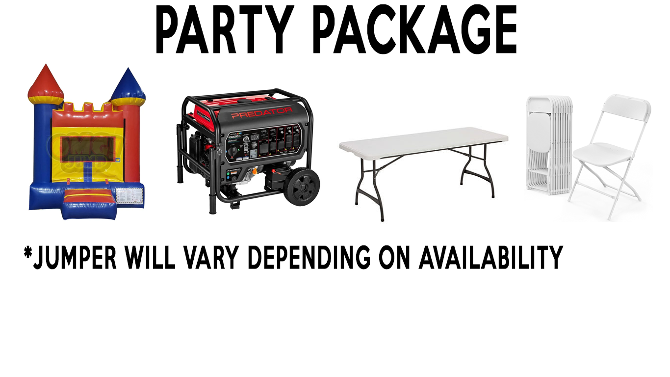 PARTY SUPPLIES RENTALS near you! We offer a budget friendly jump house package that is cheap and stress-free setup. We require 1-4 hour lead time with package setups and depending on schedule! Please allow us time upon delivery to set up.